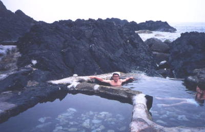 満潮時には沈んでしまう。 地元の人も毎日の風呂代わりに使用。