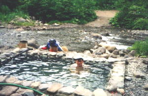 林道奥15kmくらいのところにある温泉。 川の水で薄める。