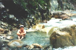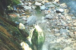 湯の流れ込んでいるいる所で入浴です。 これが快適な温度には出来ませんでした。 無理矢理の入浴です。 |