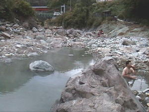 ひっきりなしに人がやってきます。 湯船も大きいのがたくさんできていて自分で造る必要もありません。 また川の様相が変わっています。 やたらと川幅は広がったような・・・ |
