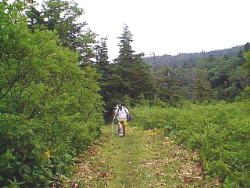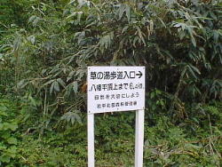 歩き始めて約15分。距離にして約1km。 写真のカップルは車に付いているカーナビの「草の湯」まで963mを信じて この先あるかどうか不安になり引き返しました。 |