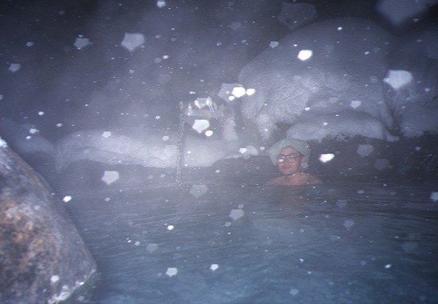雪の中の入浴となりました。 外気温は氷点下ですが温泉に入ってる限りナントもありません。