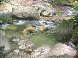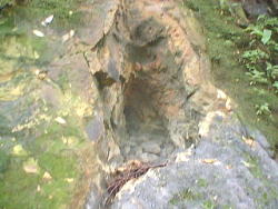 どうも誰かが岩を組んで湯を溜めた跡です。 手を浸けてみると恐ろしく熱く入湯できる温度ではありませんでしたが・・・・・ |