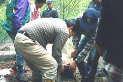 近くにあったコンクリートのU字坑を土手代りに使います。