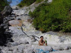 翌日は近くの野湯に出かけました。 天気がよくご機嫌な入浴です。 |