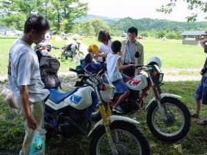 この日は大人8人子供3人の集まりでした。 宮城県鬼首温泉郷の吹上高原キャンプ場に集合でした。夕方到着するもTWが停まってなくて捜すのに一苦労。 というのもチェックインした二人はBMWとCLでやって来ていたからなのでした。 夜は組長夫婦はバーベキューのつもりが炭に火が着かない! 結局文明の利器のガスバーナーで肉を焼くハメになりました。 |