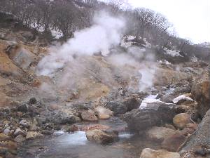 孫六温泉・黒湯上流の源泉地帯