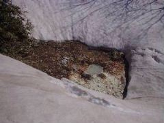 早く登らねば日が暮れるので再び登り始めました。 かなり急な坂で(正規のルートでなかったから仕方ないか?)少々辛かったですがなんとか急な箇所が終わりかけたころ・・・なんだ?これは? 鹿か熊か??? |