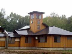 今年できたばかりの温泉、南玉川 湯宿はなやの森です。 意外な赤湯で満足。 宝仙湖に沈んだ小学校の分校を再現した建物です。 |