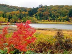 大沼です。 紅葉も真っ盛り。 太陽が出ていないのが残念。(雨です) |