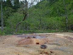で、その近くにも自噴湯はありました。 こちらの方が温度は多少暖かいです。 ただしやっぱり30度はないか??? |