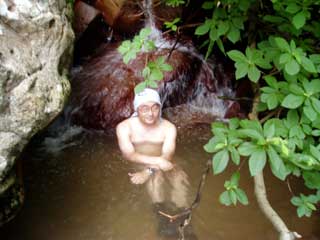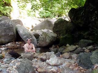 たまらず滝つぼで入浴。 でもまだまだ上があるんです。 |