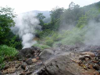 辺り一帯源泉地帯。 なかなかの光景です。 下の大きな噴気の少し下には・・・ |