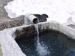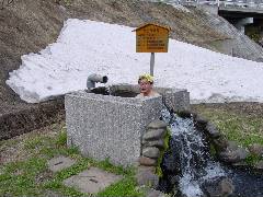 少し寒いですがいい気分です。 この後道路作業の人が通りかかりました。 なんでもこの温泉の源泉は山の反対にあるそうです。 そこから引っ張ってきているそうです。 |