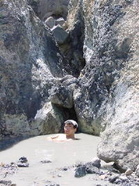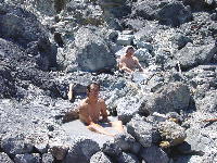 かつての硫黄採取場に沸く温泉。 辺り一帯が源泉地帯。 至る所で入浴可能。 ただし、ガス(硫化水素)が溜まりやすいのとガレ場で足場が危険なので十分な注意が必要。