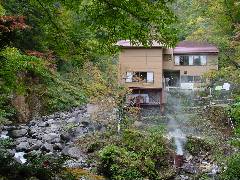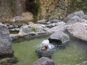 | 渓流沿いにある大きな野天風呂。紅葉の頃は素晴らしいだろうなあ。 |