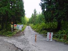 なんと通行止めです。 宿の駐車場までまだ6kmです。 途中道路が崩壊していて工事中です。 (2001年10月6日) 宿泊者のみ送迎があります。 この日はここ目当てに来たので覚悟決めて歩こうと考えていたらなんとお客さんを送っていった車が戻ろうとしていたところで運良く乗せて貰えました。 |