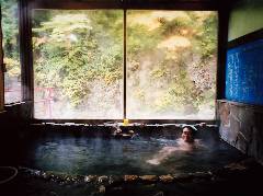 露天は掃除直後で湯を溜めている最中ということで内湯からいただきました。 ここから本流の上流に火焔(ひのほえ)の滝が見えます。 |