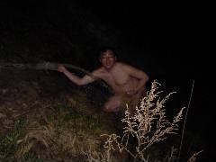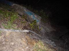 函館から夜8時半に大間へ到着。それから薬研のキャンプ場へ向かってR279を走っているとまだ下風呂温泉までは距離があるのになにやら硫化水素の強烈な臭いが鼻を突きました。 さっそく先行していた銅粉の湯氏を止め、あたりを探して見ると・・・ ホースから湯が垂れ流しでした。暗いのでこの先が何かよくわかりません。 |