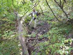 温泉仲間の銅粉の湯氏と数泉者氏が入湯に成功してから早7年。 なんとか行きたいと思いやっと機会が訪れました。 で、山地図にないきれいな道が出来ています。 このおかげで本来の山道が判り辛くなっています。 |