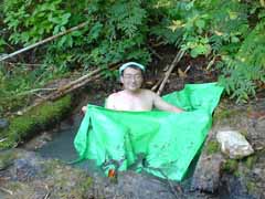 これほど臭い野湯はワースト3に入ります。 どうしても我慢できないのでドカシーでごまかします。 |