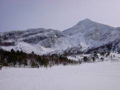 裏磐梯スキー場から上部はラングラウフコースとして有名です。 クロカンスキーで周れば氷の滝とか見ることが出来るそうです。 物好き数名山スキー装備で出かけました。 |