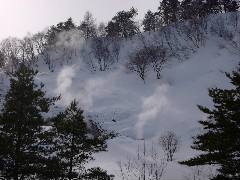 銅沼脇の斜面から噴煙が上がってます。 秋口にここへ来ましたが藪のため断念、歩きやすい(?)雪の季節にやってきました。 |