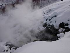 そばで見るとなかなかの迫力です。 ただ、残念ながら湯は沸いていませんでした。 ここにドカシーしいて雪を投げ込めば・・・ 駄目かなあ・・・ |