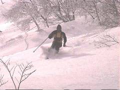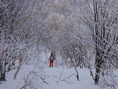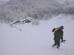 ここまでスキーを担ぎ上げた約2名、短いコースですが新雪を少しだけ楽しめました。 |