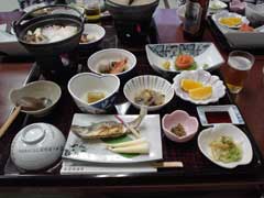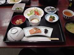 朝食です。 通常朝は7時から。 山屋さん・湯治客が多いのを考えると当然ですね。 この日ロープウェイに早く行きたかったので7時前に朝食を準備してもらえました。 |