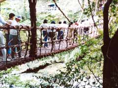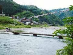 かずら橋です。 平家の落人が追っ手から逃げるためにかずらを切って橋を簡単に落とせるように造られています。 |