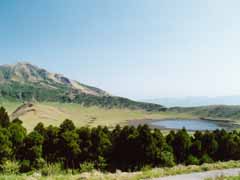 阿蘇へ向かう途中、米塚です。 かわいいお山です。 |