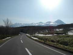 ゲートが開き少し渋滞気味の知床横断道路を走り知床峠へ。 そこから銅粉の湯氏念願の天頂山へ登りました。 (向こうへ見えるのはご存知羅臼岳) |