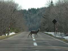 いきなり鹿が道を横切りました。 知床五湖の入り口まで数キロの間に5頭以上見かけました。 |