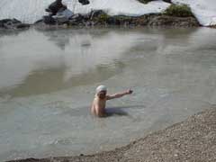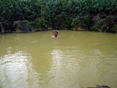 どこかの沼に見えますが薬師温泉の露天風呂です。 温くって長湯できます。 ここも自遊人のパスポートで入浴。 |