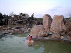 宿への帰り道に前回来て大当たりだった黄金温泉再訪。 源泉が温くなったということで加熱になり料金が400円になってました。 泡のパワーがちょと落ちたような気もしますがあやしさ、湯の良さ、露天からの眺めは変わりません。 |