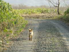 薬師温泉へ向う途中キツネ君が出迎えてくれます。 |