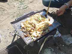 麺が変わってヤキうどん? で朝の残りのうどん(鍋)もまだあったんだなあ・・・ ずーっっと料理してくれたMさん、どうもご苦労様でした&ご馳走さまでした! |
