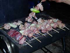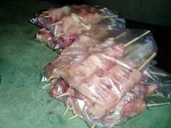 | 焼鳥の串刺しは暇な男性陣の仕事。 私もやりました・・・ |