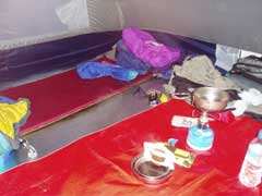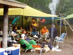 今回は5〜6人用のテントを一人で使用。 随分快適なテント生活でした。 10年ほど前からの知り合いの集まりのこのキャンプ。 子連れの人も増えたのですが装備はそろツーリング時のままの人が多くなんと二人用テントを家族で使用しているところも・・・ ちょっと悪いような気もしながらゆったりと過ごしました。 |
