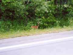 道端からエゾジカがこっちを見てました。 朝早いと野生動物との遭遇のチャンスが増えます。 |