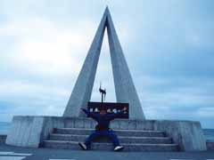 宗谷岬の音楽が延々と流れていて旅情を誘います。 他の観光客と変わらず記念撮影です。 |