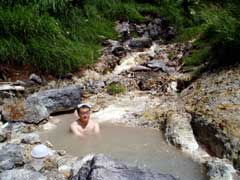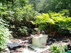 この日は安比近辺の野湯の再訪でした。 案内してあげると約束していた温泉仲間と朝待ち合わせ最初は安比温泉。 最近の地震で源泉の位置が変わったらしく湯量・温度も微妙に変化? 少し温くなった気がしました。 |