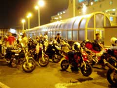 フェリーは22時発。 待ってる間に結局2度目の夕食。(コンビニの照り焼き丼)こりゃまた太るなあ・・・ バイクはざっと30〜40台ってとこでしょうか。 大きなバイクの中でKSRのちいささが目立ちます。 |