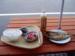 本来はお土産やさんですがまだ混んでないのでホッケを焼いてもらいました。 |