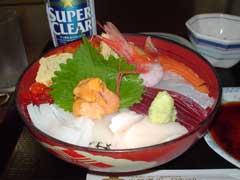 お昼はここの食堂でいただきました。 海鮮ちらし+ノンアルコールビールで大満足。 この朝の温泉+早い昼食のパターン、今回多いです。 ここで電話して本日の宿確保。 |
