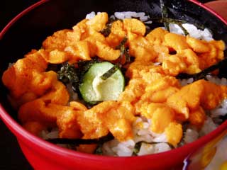 で、気がつけば(?)ここは利尻・鴛泊。 食堂さとうのウニ丼3000円也。 いやいや、朝(ブランチ?)から贅沢・・・ 濃厚な味がたまりません。 |