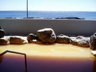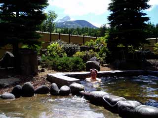 前回(2002年)来た時は天気がイマイチで利尻富士が見えませんでしたが思ったとおりこの露天からは利尻富士が見えるんですね。 で、温泉内には例によって利尻昆布が入っています。 |