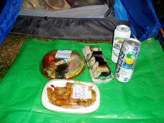 夕食は途中コンビニで調達したお惣菜。 カロリーオフの発泡酒にカロリーオフのチューハイ。 ヘルシーだ・・・ 手前のおつまみセットはちょっと余分? |