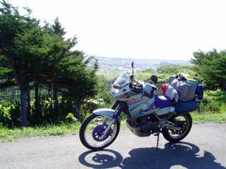 稚内の街並みを眼下に出発準備完了。 後半はホクレンの旗を集めれるだけ集めてみようか? 以前取りこぼした道央・道東の温泉を回ってみようか? というわけで大移動が決定! |